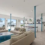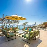 Gäste können eine Terrasse mit einem Küsten- Blick aufs Meer genießen.